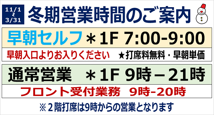 年末年始 営業時間のご案内